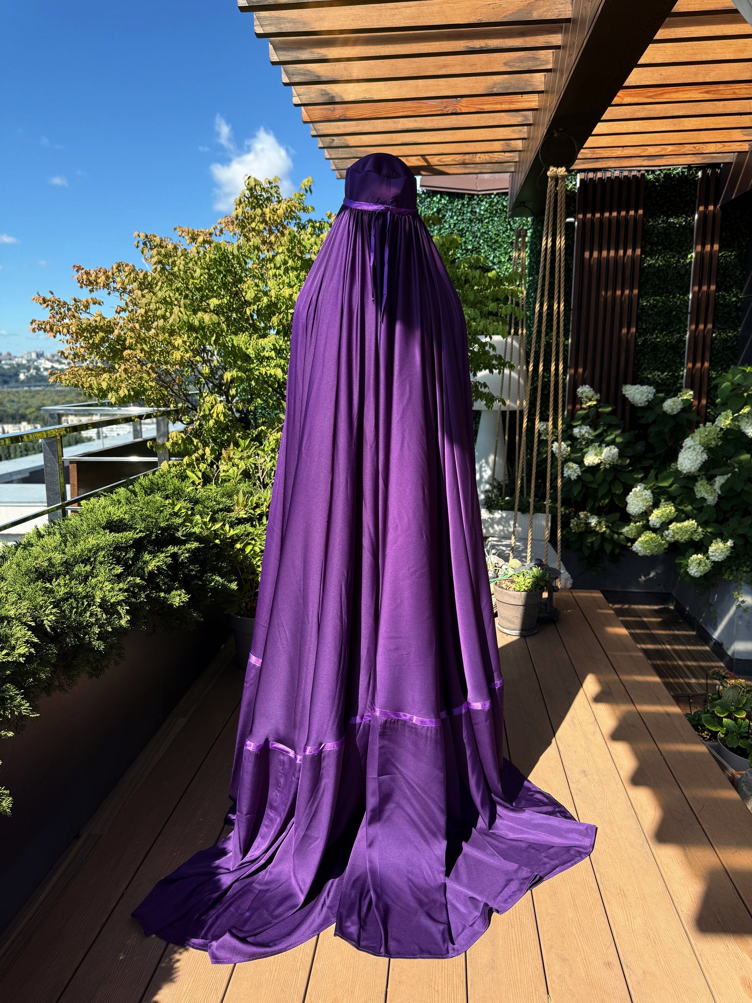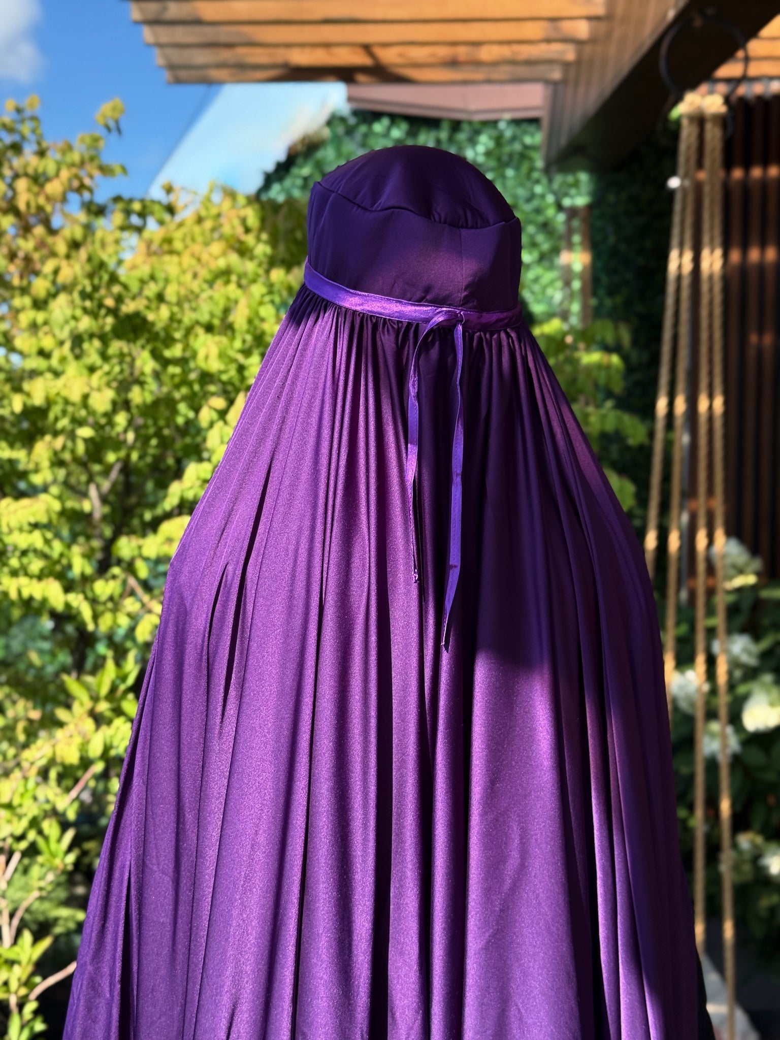 Eggplant color silk Afghan burqa cape, full niqab veil, Saudi abaya